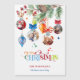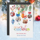 This is a bright, colorful and unique holiday greeting featuring four festive Christmas ornament-shaped photo templates hanging from a watercolor pine branch. Also featured is a cheery multicolored Merry Christmas text graphic in a custom decorative font. Includes editable text fields.