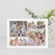 Um cartão de Natal moderno com colagem de fotos com espaço na parte traseira para outra fotografia e uma mensagem personalizada para a família