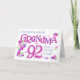 Um Cartão de Aniversário muito bonito para a sua avó, com a palavra "vovó" cheia de padrões florais cor-de-rosa e malvados e o número 92 cheio de bolinhas correspondentes. A saudação do cobrir principal é, 'Para o mais maravilhoso AVÓ 92 anos de idade hoje!' com grupos de flores dos padrões desenhando tudo junto. A mensagem dentro é: "Tenha um aniversário maravilhoso!", mas esta é apenas uma sugestão e você pode facilmente mudá-la para o que quiser.