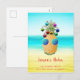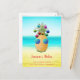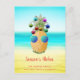 Um abacaxi tropical toma o Natal com bolhas coloridas e tons azuis legal contra uma praia ao lado. Personalize com sua própria mensagem e nomes de família.
