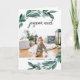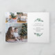 Compartilhe cartões de natal com estes cartões de Natal modernos e elegantes e dobrados, com a sua foto favorita, tirada com uma luxuosa botânica de inverno, em verde-aquarela. A saudação de Natal francesa "Joyeux Noel" aparece no topo em letras esboçadas à mão, com seus nomes e o ano no fundo. Personalize o dentro com três fotos adicionais e uma mensagem pré-impressa personalizada adornada com folhagem de cor d'água verde correspondente.