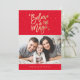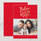 Compartilhe a magia do Natal enviando aos seus entes queridos um cartão com fotos de férias moderno. Este cartão de feriado de na moda contém texto falsa em folha de ouro que diz "Acredite na magia", fundo vermelho com pontos vermelhos claros e espaço reservado para sua foto e texto personalizados.