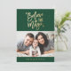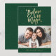 Compartilhe a magia do Natal enviando aos seus entes queridos um cartão com fotos de férias moderno. Este cartão de feriado de na moda apresenta um texto de folha de ouro falso que diz "Acredite na magia", fundo verde com pontos verdes claros e espaço reservado para sua foto e texto personalizados.