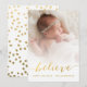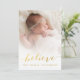 Cartões de natal para seus entes queridos são facilitados com este versátil e simples cartão com fotos de feriado com a palavra "Acredite" escrita em uma sobreposição de texto de fonte de script dourado com um efeito negro sobre sua foto favorita da família. Design por ELKE CLARKE © PARA MONOGRAMGALLERY. Substitua a foto de exemplo por sua.