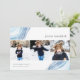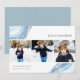 Mande saudações a Chanucá para amigos e família com nossos cartões com fotos elegantes. Projetado para acomodar três de suas fotos quadradas favoritas dispostas lado a lado em um formato de colagem, a placa apresenta ilustrações de fatia geodada de cores aquáticas em azul claro, para um visual moderno, mas festivo. Personalize com sua saudação personalizada de Chanucá e seu(s) nome(s) familiar(s).
