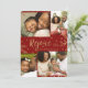 Elementos decorativos de folhas de ouro falsas criam um efeito elegante para esses cartões de natal de fotos em vermelho. Fácil de personalizar com suas próprias fotos e texto!