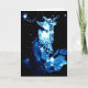 Um cartão de Natal único e dramático que mostra decorações de árvores de Natal azuis brilhando contra um fundo preto. Um anjo soprando um trompete parece se erguer de um grande ponto, cordas de miçangas e luzes espalhadas. Mande aos seus amigos um cartão diferente e elegante este ano! Personalizável, você pode alterar o texto para se adequar a si mesmo. Agora diz, em prata: Desejando alegria no Natal e no Ano Novo.