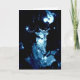 Decoração das árvores de Natal a azul sobre preto; corno anjo soprando, ascensão de flor grande, luzes e miçangas. Um cartão único e atraente. Texto dentro: Desejando-lhe alegria no Natal e no Ano Novo. Personalizável, você pode alterar o texto para se adequar a si mesmo.