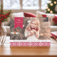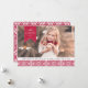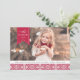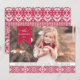 Cartão com fotos festivo apresenta sua foto horizontal ou orientada a paisagem favorita em cheio sangrado com sotaques vermelhos e brancos alegres. Uma faixa vermelha de fita aparece no canto superior esquerdo e ostenta seu nome de família e o ano, enquanto sua mensagem personalizada é colocada no canto inferior, sobre uma faixa padrão nórdica em vermelho e branco.