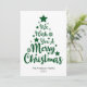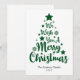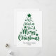 Desejamos um Feliz Natal em fonte estilo manuscrito em forma de árvore em cartão de Natal verde e branco. Você pode alterar a cor do fundo e também do gráfico principal, bem como o nome da família e o texto do ano.