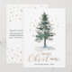 Festividades Árvore Dourada de Aquarela com Cartão de Natal Mod