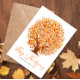 cartão de feriado de ação de graças com folhas de árvore de outono. A cor do texto e da parte traseira pode ser personalizada.