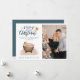 Este tradicional cartão de Natal mostra uma imagem de Jesus bebê dormindo em uma mangueira à esquerda e um lugar para você adicionar sua própria foto à direita. No topo estão as palavras "Feliz Natal em uma caligrafia aquática. Abaixo está o verso Isaiah 9:6 Você pode personalizar com seus nomes. A parte de trás do cartão tem um fundo azul de coordenação.