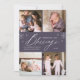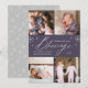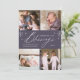 Este elegante cartão de saudação de Natal combina um cartões de natal e um novo anúncio de bebê com o texto "Contando nossas bênçãos". O design oferece 4 quadros de fotos quadrados e texto personalizado para nomes de família e data de nascimento para seu novo bebê. O fundo é um roxo escuro e pode ser mudado para outra cor escura escolhendo personalizar. Fotografia © Storytree Studios, Stanford, CA