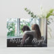 Mande cartões de natal para amigos e família em estilo chic com nossos cartões com fotos elegantes. "Feliz e Brilho" aparece sobre sua foto como uma cobertura branca de script de caligrafia, com sua saudação e nomes embaixo. Cartões que se invertem a um padrão de amora-branca pintada à mão e de folhas em vermelho e verde.