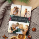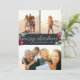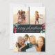 Nosso design de cartão festivo e elegante é a maneira perfeita de mostrar três de suas fotos de família favoritas. A design apresenta "Feliz Natal" no moderno roteiro de caligrafia branca, com inscrições em fundo de carvão acentuadas com flores verdes e vermelhas de aquarela. Personalize com seus nomes e o ano para uma saudação de Natal personalizada e chic, e adicione dois retratos e uma foto de paisagem usando o modelo fornecido.