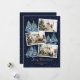 Linda foto azul Feliz Cartão de Natal com floresta de inverno de neve. Personalize facilmente este cartão de feriado com aquarelas com suas fotos e texto.