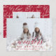 O cartão com fotos de feriado elegante apresenta uma foto orientada para a paisagem com cheio, com uma cobertura de luz bokeh para um aspecto festivo e borbulhante. "Maravilhas de seu amor" está sobreposto em guião vermelho de amora e letra de bloco, com seu(s) nome(s) e ano abaixo. Adicione duas fotos adicionais ao verso, juntamente com uma mensagem personalizada, em um fundo botânico vermelho e creme com padrão.