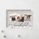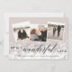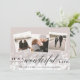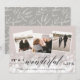 O cartão com fotos de feriado elegante apresenta três fotos quadradas em um layout de colagem, com uma cobertura de luz bokeh para um visual festivo e borbulhante. "É uma vida maravilhosa" está sobreposta em letras negras e blocos, com seus nomes e o ano abaixo. Cartões invertendo para um fundo botânico neutro e padronizado.