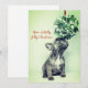 Cartão francês para cães-de-banho para organizações de salvamento de cães ou babás ou empresas de creche. Diabo francês de cachorrinho cheirando maleta