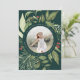 O cartão com fotos elegante apresenta uma foto favorita cercada por uma folhagem botânica verde-luxuosa e minúsculos bagos vermelhos. Personalize com um cartões de natal personalizado (mostrado com "deixe o céu e a natureza cantar"), e seus nomes curvados em torno da foto. Adicione duas imagens adicionais às costas, juntamente com o ano.