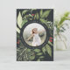 O cartão com fotos elegante apresenta uma foto favorita cercada por uma folhagem botânica verde-luxuosa e minúsculos bagos vermelhos. Personalize com um cartões de natal personalizado (mostrado com "deixe o céu e a natureza cantar"), e seus nomes curvados em torno da foto. Adicione duas imagens adicionais às costas, juntamente com o ano.