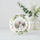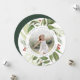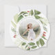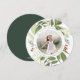 Cartão com fotos elegante em forma redonda única apresenta uma foto favorita rodeada de uma folhagem botânica verde-luxuosa e minúsculas bagas vermelhas. Personalize com um cartões de natal personalizado (mostrado com "deixe o céu e a natureza cantar"), e seus nomes curvados em torno da foto.