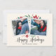 Cartões com fotos elegantes e festivos fotografam duas de suas fotos quadradas favoritas com uma sutil borda decodificada e folhagem vermelha e verde de feriado nos cantos, em um fundo de marfim macio. "Felizes Feriados" aparece na parte inferior do roteiro de caligrafia negra, com seus nomes e o ano abaixo.