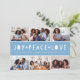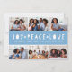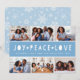 Compartilhe seis fotos favoritas com o nosso cartão festivo e brilhante. Uma faixa azul-vitoriosa do centro lê "alegria, paz, amor" em letras brancas com seus nomes e o ano abaixo.