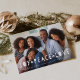 Compartilhe a sua foto favorita neste cartão festivo de férias, sobreposto com "alegria, paz, amor" em letras brancas de recorte. Personalize com seus nomes e o ano abaixo.