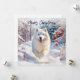 Mande um charme canino para amigos e familiares com este cartão de Natal Samoyed. O elegante cão é fotografado correndo alegremente através de uma paisagem nevada, com árvores cada vez verdes, num dia brilhante de inverno. A imagem está no estilo de aquarela. A saudação "Feliz Natal" está no topo na tipografia elegante da escrita, enquanto o texto abaixo do cão pode ser personalizado com o(s) seu(s) nome(s) familiar(ais) ou outras palavras. Uma escolha na moda para donos de cães e amantes de os animais.