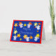 Um cartão de Natal brilhante e festivo, com seis anjos brancos a polirem as estrelas em preparação para o Natal, a partir de um design de colagem de papel pintado à mão por Judy Adamson. A saudação à frente, em letras brancas sobre fundo azul profundo, é "Feliz Natal" e a dentro é deixada vazio para a sua própria mensagem.