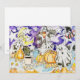 Delicie o amante de Halloween em sua vida com este cartão da temporada assustadora! Você também pode exibi-lo como arte em seu paraíso gótico. Eu projetei este cartão usando minha criação original de aquarela e caneta-tinteiro. Ele retrata GATOS FANTASMAS e ABÓBORAS e uma lua crescente rabugenta entre milho doce e folhas de outono. Ele até mostra um bule de chá listrado de Halloween e bebidas de café!