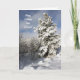 Um céu azul pontilhado com nuvens de tempestade é o fundo de um pinheiro coberto por neve parado em uma encosta do Colorado, a neve cobria aspiras abaixo dela. Personalize a mensagem frontal e a mensagem dentro para se adequar ao seu gosto.