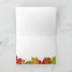 Cartão de saudação de Ação de Graças personalizável com design moderno colorido de outono, com lindas folhas de cartaz vermelho, laranja e verde sobre fundo castanho de chocolate. Você pode personalizar ainda mais o layout desta placa, alterar cores e adicionar texto e/ou imagens extras.