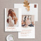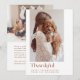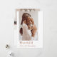 Este moderno cartão com fotos de Ação de Graças oferece uma maneira na moda e sincera de compartilhar gratidão com os entes queridos. A frente da placa apresenta uma foto vertical do solteiro, formada lindamente por um fundo branco nítido. A palavra "agradecimento" aparece elegantemente na tipografia moderna, complementada pela saudação "Ação de Graças Feliz" e pelo nome da família em caracteres castanhos quentes. Este design limpo e contemporâneo permite que a sua foto tome o palco central, fazer-o como uma escolha perfeita para aqueles que apreciam a simplicidade com um toque de sofisticação. A parte de trás da carta continua a design, que oferece espaço para outra querida foto. Este slot adicional de fotos oferece uma oportunidade de compartilhar mais momentos favoritos do ano. Há também uma área designada para uma mensagem curta e personalizada, que lhe permite expressar o seu sincero apreço e os seus desejos nas suas próprias palavras. A combinação de elementos visuais e escritos cria uma manutenção significativa que os amigos e a família irão valorizar. Feito com materiais de alta qualidade, este cartão com fotos de Ação de Graças foi projetado para deixar uma impressão duradoura. Seus detalhes estéticos e pensativos modernos fazem dela uma escolha ideal para famílias que querem compartilhar sua gratidão de forma contemporânea e elegante. Seja exibido em uma manta ou guardado como recordação, este cartão captura perfeitamente o espírito da estação e o calor de seus desejos de feriado.