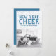 Feriado de Ano Novo Cheer Holiday Cartão com fotos com um fundo estelar divertido em azul e branco. Adicione uma foto e uma saudação personalizada para personalizar. Fotografia © Storytree Studios, Stanford, CA