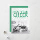 Feriado de Ano Novo Cheer Holiday Cartão com fotos com um fundo estelar divertido em verde e branco. Adicione uma foto e uma saudação personalizada para personalizar. Fotografia © Storytree Studios, Stanford, CA