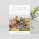Ouro moderno e elegante "2024", cartão com fotos de Ano Novo. Design minimalista com foto de solteiro. Traseira das características da placa, padrão de bolinhas dourado a preto.