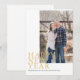 O layout moderno do cartão com fotos de Ano Novo apresenta a grafia empilhada "Feliz ano novo" em ouro. Personalize com sua própria saudação pessoal.