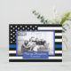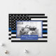 Compartilhe seus desejos de feriado nesta época de Natal com um cartão único personalizado fotográfico achatado. Este design apresenta uma bandeira americana, fina e azul, de polícia branca e negra, para decorar em volta da sua fotografia. Sob sua foto está uma área de azul para o sentimento que diz "Feliz Natal" e seu nome familiar abaixo que pode ser personalizado. A parte de trás do cartão também tem a fina linha azul policial bandeira americana Substitua a foto mostrada com a sua própria para uma design que sua família e amigos amarão! Elaborado por ©Tim Coffey. Fotografia © Storytree Studios, Stanford, CA.