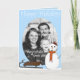 Envie desejos de feriado quentes a todos os seus amores com este cartão de cartões de natal de cena de neve alegre e alegre. Use o modelo de texto para inserir uma foto, alterar a saudação se desejar e inserir seu nome. Cartão comemorativo apresenta um fundo azul-neve claro com um trenó de madeira e um boneco de neve