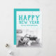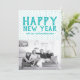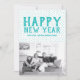 Placa plana fotográfica com Feliz ano novo pontilhado com um fundo de bolinhas divertido em azul-turquesa e branco. Adicione uma foto e uma saudação personalizada para personalizar. Fotografia © Storytree Studios, Stanford, CA