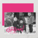 Esta brilhante e moderna fonte de escrita de pincel design é uma maneira divertida de enviar alegria de Natal nesta época de férias. O design cor-de-rosa quente piscante funciona melhor com uma foto em preto e branco.