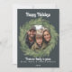 Cartão de férias simples e nítido, com uma coroa na frente, pronto para sua foto de família. A parte traseira apresenta mais dois círculos fotográficos com espaço para legendas e uma mensagem pessoal.