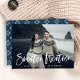 Celebre a temporada de festas com amigos e familiares, enviando-lhes nosso cartão com fotos quente e aconchegante de férias do Sweater Weather. O cartão de feriado apresenta a sua foto favorita com o "Sweater Weather" em uma camada branca de fontes de script com letra manuscrita. Personalize a frente da placa adicionando uma saudação personalizada e o nome da sua família. O verso da placa apresenta um padrão de suéter de flocos de neve nórdico, marinho e branco.
