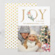Mande alegria de férias para sua família e amigos com este elegante e moderno cartão com fotos de férias de ouro floral da JOY com padrão de bolinhas douradas no verso.