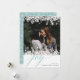 O design de cartão de feriado elegante e moderno apresenta a sua foto favorita enquadrada no topo e no fundo por uma borda de ilustrações brancas em flocos de neve. "Joy" aparece por baixo na tipografia de gráficos de caligrafia. Personalize com seus nomes e saudações personalizados no canto inferior direito. Cartões invertem para um padrão de floco de neve correspondente em aqua gelada.