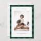 Compartilhe cartões de natal com estes cartões de Natal fotográficos com seu conjunto de fotos favorito em um padrão de xadrez de búfalo desenhado manualmente em verde e preto. Uma área de mensagem editável permite personalizar seu cartões de natal em letras modernas. Adicione seu nome ou nomes de família abaixo.