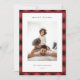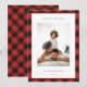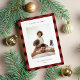 Compartilhe cartões de natal com estes cartões de Natal fotográficos com seu conjunto de fotos favorito em um padrão de xadrez de búfalos desenhado manualmente em vermelho clássico e preto. Uma área de mensagem editável permite personalizar seu cartões de natal em letras modernas. Adicione seu nome ou nomes de família abaixo.